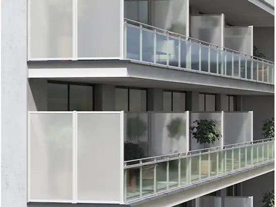 Positionné à l’extrémité du balcon, Eklipse est un garde-corps conforme à la norme NF P 01-012. Avec une hauteur allant de 1800 mm à 2250 mm, il assure une protection optimale, idéale pour les habitats collectifs. Son vitrage associé à un cadre en aluminium laqué offre une grande liberté de personnalisation en matière de coloris.