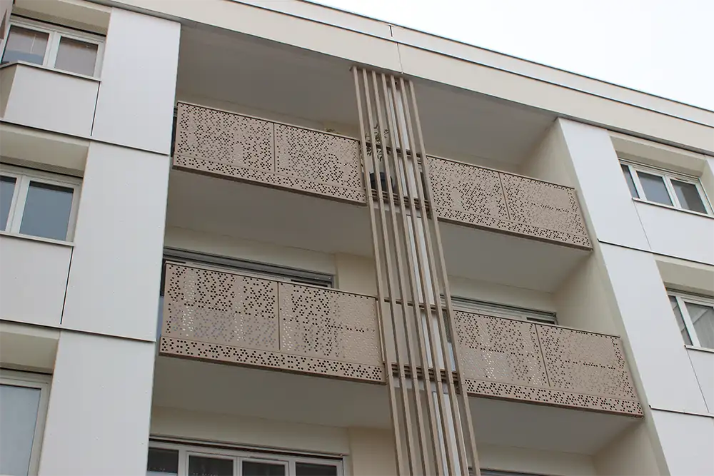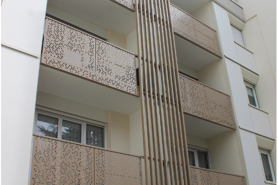 Le garde-corps en aluminium Karactère offre de la hauteur de votre créativité. Les décors découpés laser embellissent le quotidien des villes et offrent de véritables lieux à vivre.